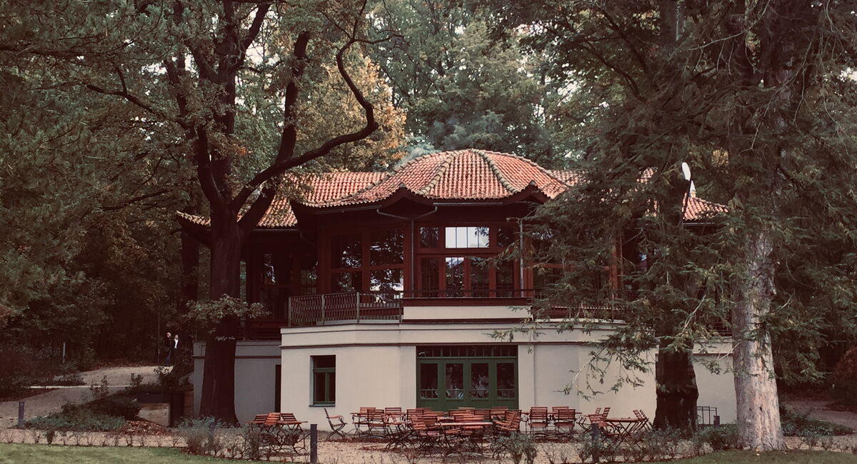 Das zugehörige Grundstück wird als gestalterischer Teil des denkmalgeschützten Rathausparkes restauriert und um chinesische Gartenelemente um den Pavillon ergänzt. Die Freianlagen werden die historische Gestaltung zeigen; gleichzeitig werden sie den Anforderungen an eine zeitgemäße Gastronomie- und Begegnungsstätte gerecht werden.