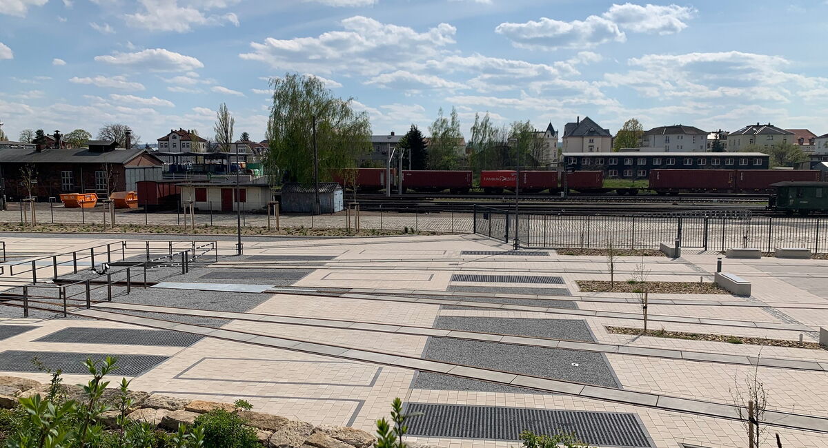 Eine nicht alltägliche Aufgabenstellung. Auf einem Freigelände des Tagungszentrums der Sächsischen Wirtschaft (TSW) und der Eventlocation ‚Güterboden‘ sollen die für ein Eisenbahnmuseum genutzten Flächen in eine Aufenthalts- sowie Veranstaltungsfläche und einen Parkplatz umgestaltet werden. Die Entwurfsidee legt sich wie ein Tuch über die gesamte Freifläche mit seinen verschiedenen Nutzungsbereichen. Technisch anspruchsvoll ist die Pflasterung zwischen den Gleisen und die Einbeziehung der eisenbahnnotwendigen Ausstattungen.