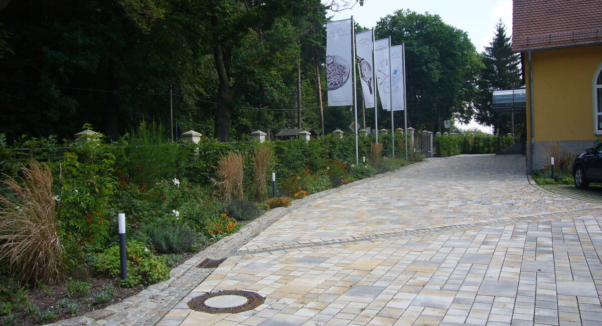 Mit der Umnutzung der ehemaligen Gastwirtschaft Todenmühle - Ullersdorfer Mühle zu einer Uhrenmanufaktur werden die Freianlagen der neuen Nutzung entsprechend repräsentativ gestaltet.