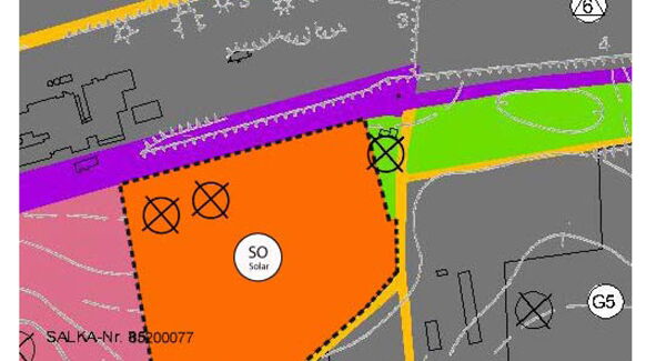 Als Grundlage für die Errichtung eines Solarparks (Photovoltaikkraftwerk) auf einer vormals militärisch genutzten Brache wurde ein Bebauungsplan erstellt und im Parallelverfahren eine Teiländerung des Flächennutzungsplanes durchgeführt. Diese Leistungen wurden einschließlich der Erstellung des Umweltberichtes, des Grünordnungsplanes und der Koordination von Fachplanern durch hase LA geleistet.