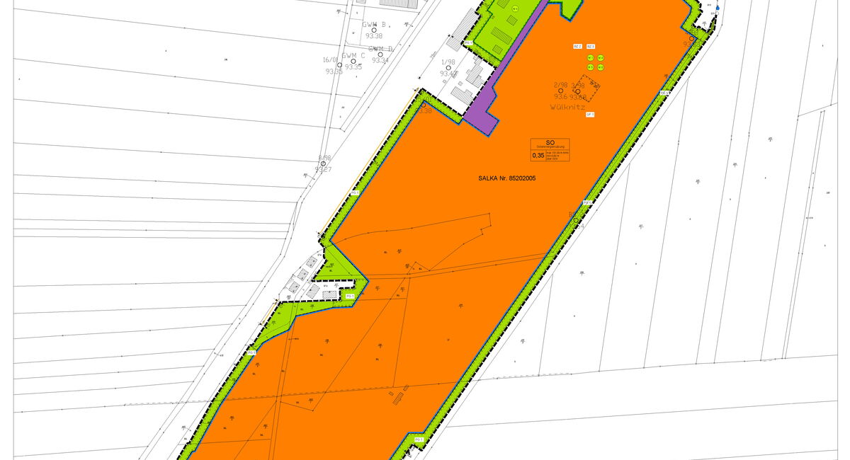 Als Grundlage für die Errichtung eines Solarparks (Photovoltaikkraftwerk) auf einer vormals industriell genutzten Brache wurde ein Bebauungsplan erstellt. Diese Leistungen wurden einschließlich der kompletten Verfahrensführung, Erstellung der Verfahrensakte, Erstellung des Umweltberichtes, des Grünordnungsplanes und der Koordination von Fachplanern durch hase LA geleistet.