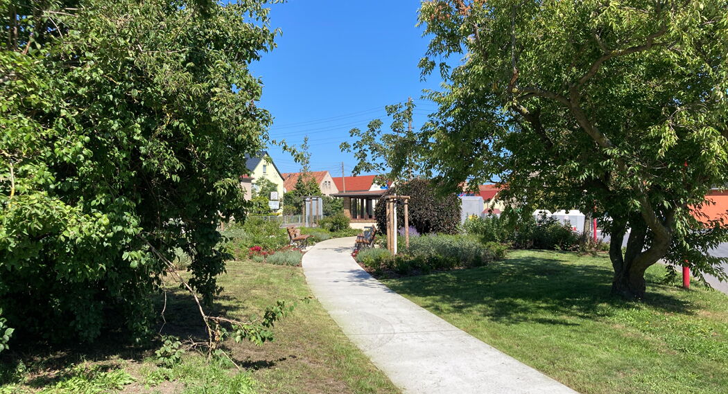 Der Dorfanger wird zu einem lebendigen Treffpunkt für Alt und Jung umgestaltet, mit Sitzgelegenheiten und Grünflächen. Der Spielplatz wird modernisiert und für alle Altersgruppen attraktiv gestaltet. Die Bushaltestelle wird barrierefrei ausgebaut, um den Zugang für alle zu erleichtern. Diese Maßnahmen schaffen einen inklusiven und einladenden Dorfmittelpunkt.
